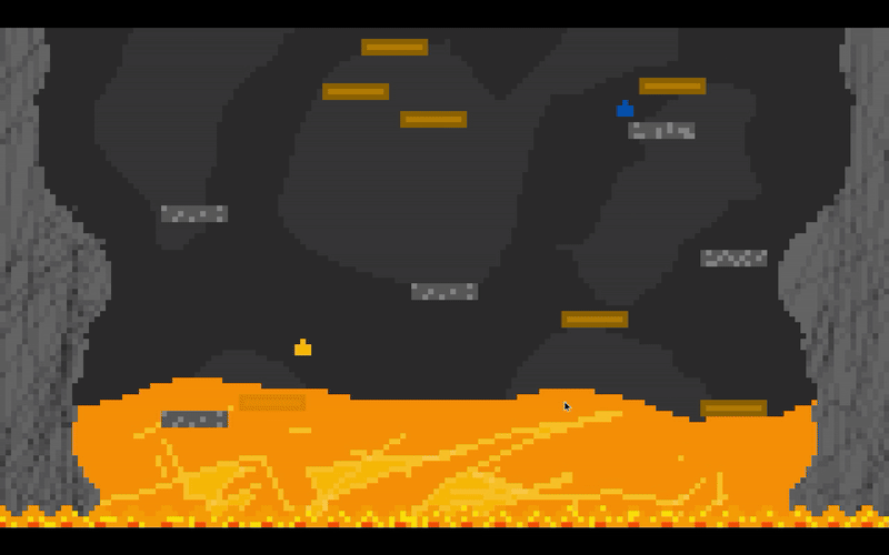 Try to stay above the lava while dodging your opponents bullets and firing your own.